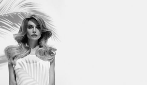 My goal for this collection was to create refreshed imagery for this elevated brand and tie it to its Hawaiian heritage in a sophisticated way. The palms are a nod to the tropics yet still feel chic and high-fashion for a discerning customer. I chose simple, understated wardrobe to let the hair shine.